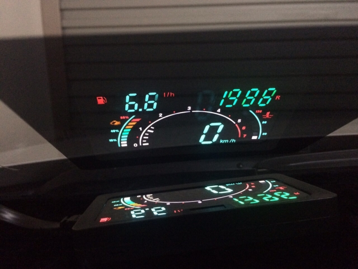 跟業務凹的原廠HUD,有時速、轉速、瞬間油耗、水溫,但是沒結合導航。