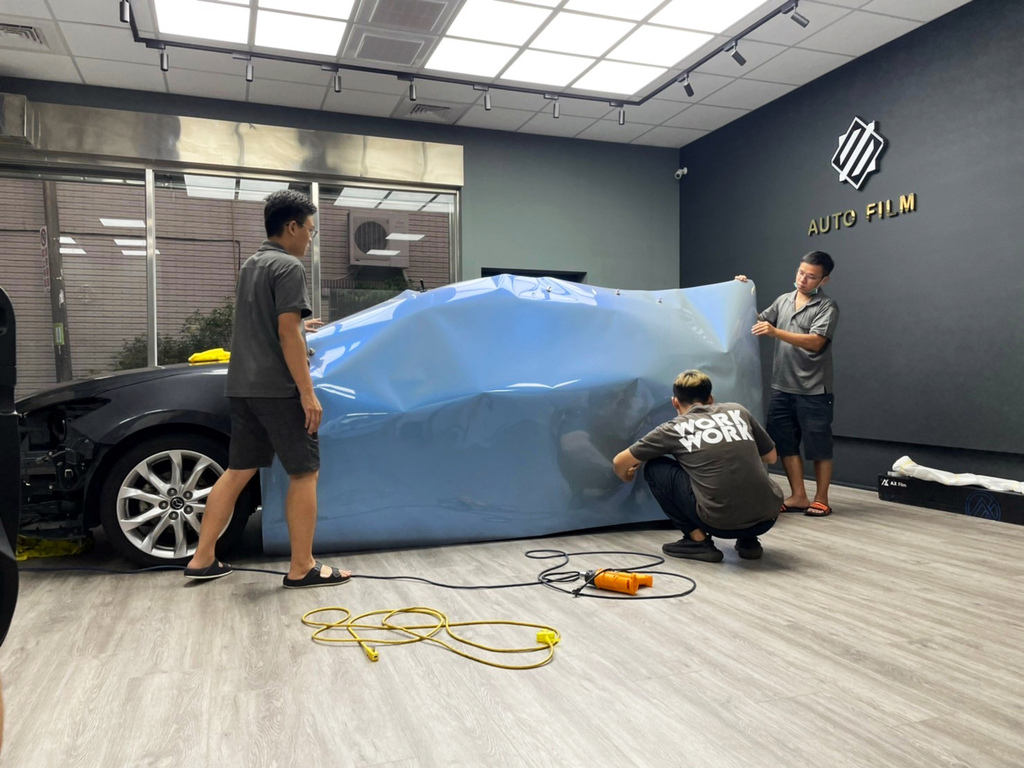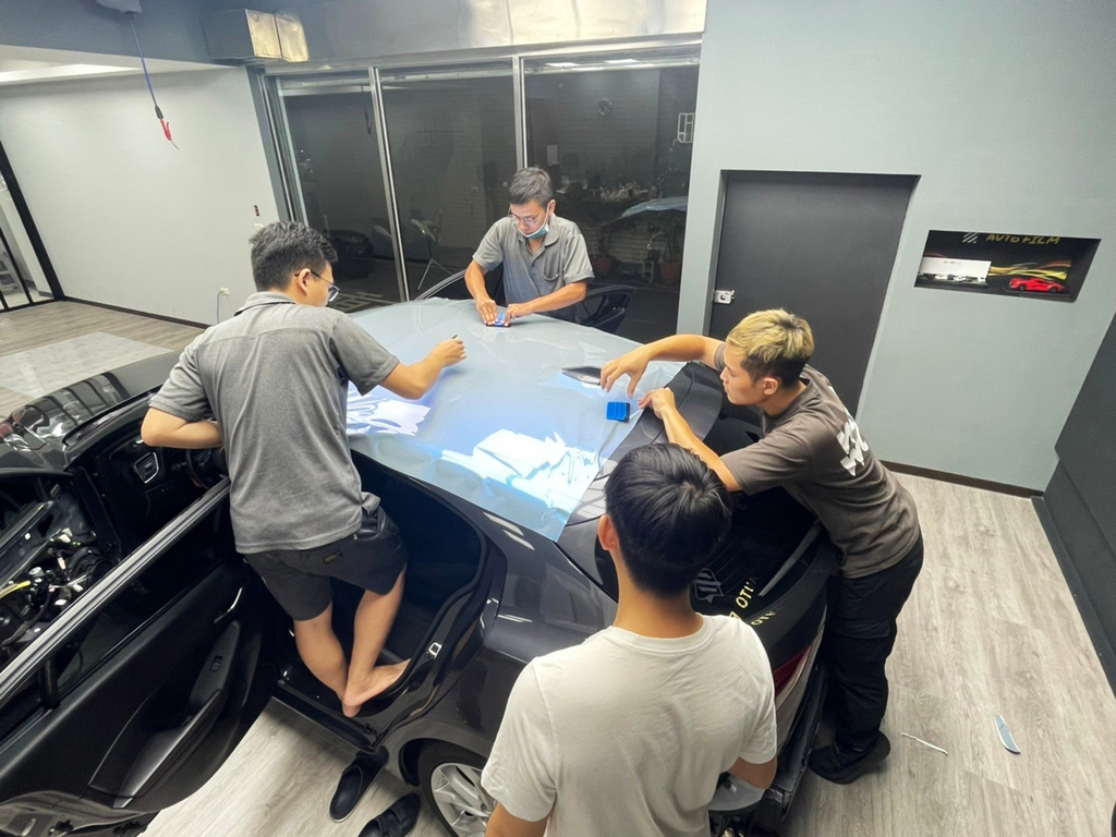 ▼相比有些汽車包膜店家只有一、兩人在施作,奧圖菲則是團隊服務,這點尤其凸顯在大面積包膜,不會有一人施作貼了又撕、撕了又貼的問題,團隊合作包膜更有效率、也包得很平整。