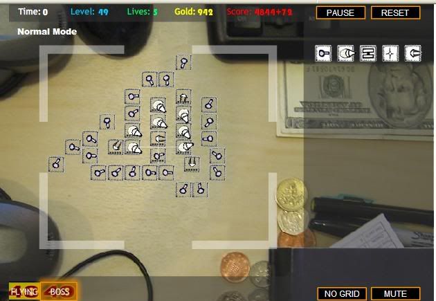 試了別種圍法,終於Normal 全滅,用5個squirt tower,不用像自己之前另一種布陣法要6個之外還要堵來堵去.....不太清楚要得高分的標準是什麼?是塔用得越少越好嗎?======================================================更新:Normal 全滅 score : 66xx搞清楚高分標準了,當然除了所有Levels要全滅外,每一個Level中如果能夠在時間到前早一點按下"Send Next Level",就能得到額外的加分,前提是湧來的Creeps不會當場讓陣法灌爆破功....=====================================================更新2:Hard 全滅 score : 6262布陣類似,squirt tower變6個。