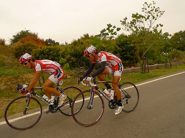 轉進139之後爬坡的強度拉的更高,許多台灣選手也受不了開始落隊,而Specialized-Novatec的嘉宏和安龍兩人也被操的死去活來,在半途落隊下來,不過兩人作伴還能合作,加上這兩位的下坡能力都很好,拼一下應該還可以接回集團。回到平地之後,落後選手的車隊們紛紛開始出現一些小動作 - 拉車、偷跟隊車等猶如家常便飯,不過Specialized-Novatec在郭大的堅持之下,絕對不允許這樣的行為發生,即使沒有裁判看到、沒有大會吹哨驅趕,郭大也不讓選手跟在隊車後面。