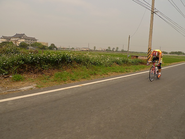 在彰化市交管做的還不錯,後來發現原來警察用繩子把民眾都擋起來了。長官領騎並暖身圈結束之後,就爬上台74甲公路,這段公路印象中我騎過一次,記得邊騎邊罵,不但風大坡又陡,加上路很寬還有錯覺,痛苦的要死。而這個長坡也害死不少選手,沒多久Polygon車隊就有選手掉隊了,真慘,這裡才開賽不到15公里,看來他今天也差不多玩完了。