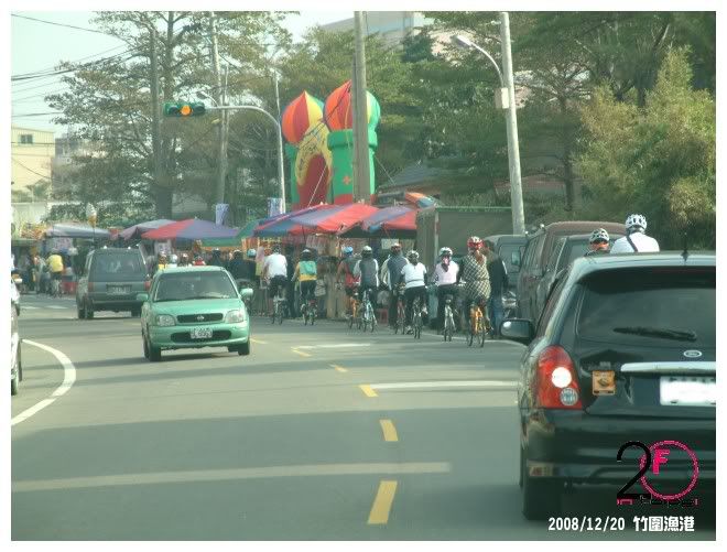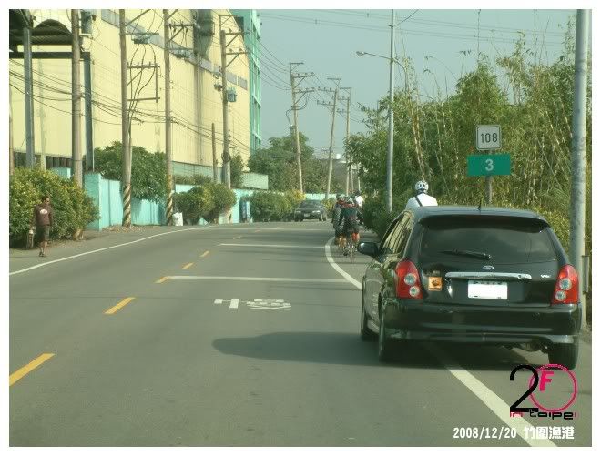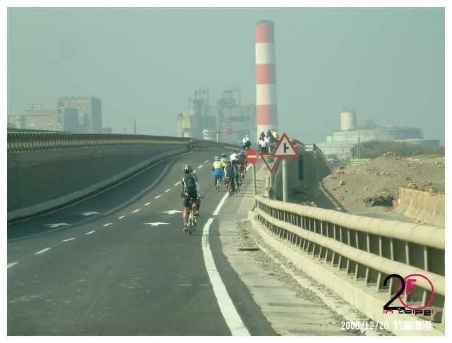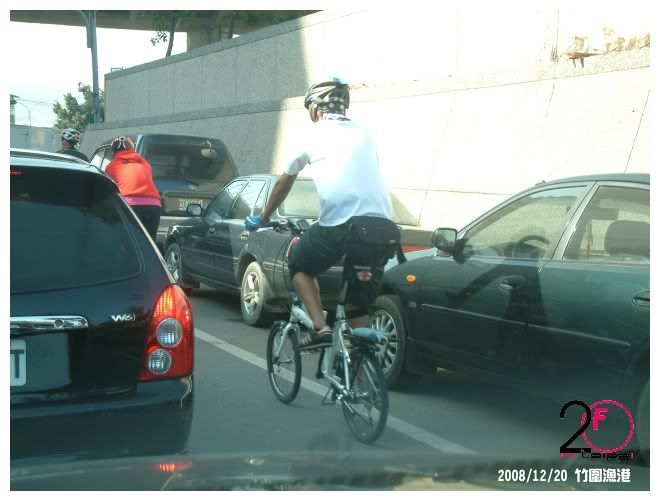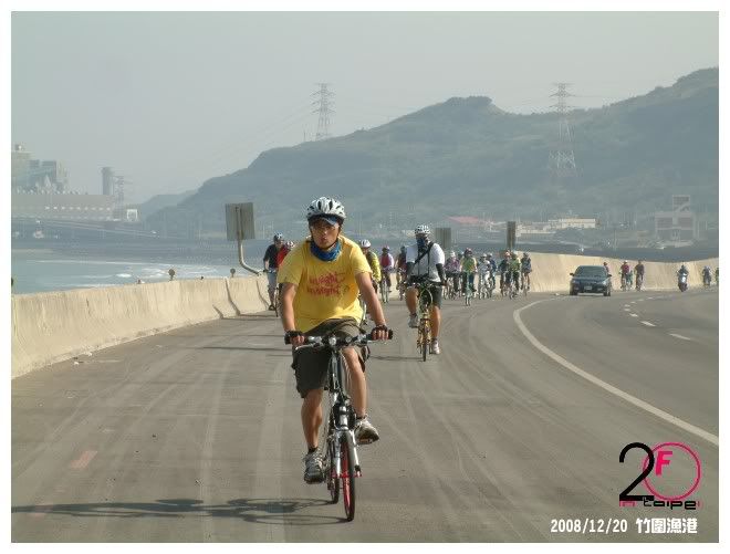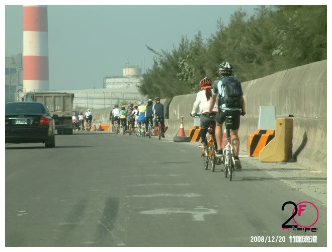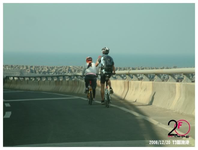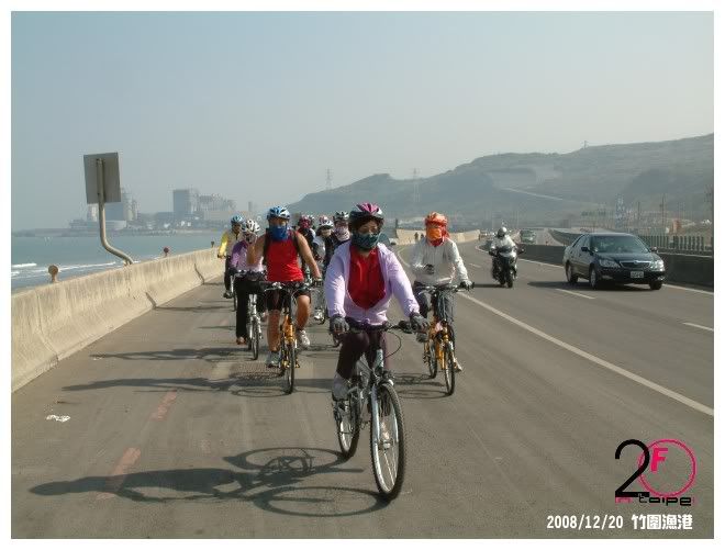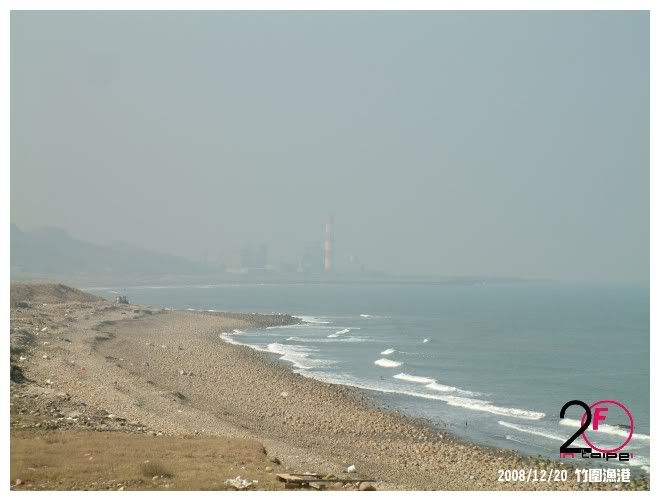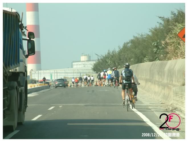 ↓離開林口發電廠後,右側就可清楚看見一望無際的大海。長長的車陣非常壯觀。