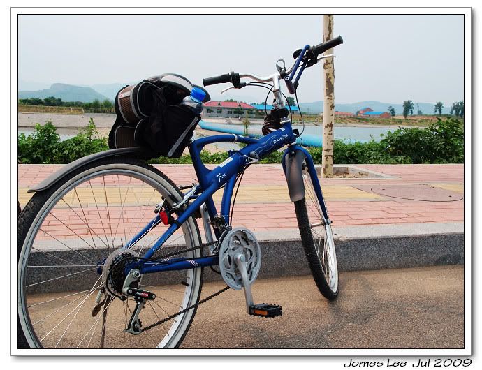 ===================================2009-07-05 夏天的門樓水庫===================================是的沒錯我又晚了一個禮拜才貼圖而這次的目的地是門樓水庫基本上....煙台知道的路線就這幾條...之後會不斷的repeat吧...有些太遠的大概也沒啥機會去而門樓水庫因為遠近適中大概是之後會最常去的吧...而這也是新生訓練的好地方這次的成員有姊夫姊夫弟(謎)亨利and me本來還有若干人等也要一起去的但是被客戶抓去打球的打球被公司抓去值星的值星...而騎到最後....姊夫跟姊夫弟折返...只剩下我跟亨利....1. google earth這次因為忘了幫Edge 305充電,只帶了Oregon 400T出門我終於見識到了什麼叫做火星座標不過基本上「幾何」圖形還是沒錯的只是整個路線off set了幾百公尺2. 姊夫這是今天最後看到姊夫的時候..之後沒多久就傳來折返的消息...至於姊夫弟...怎麼都沒照片?本來想說到夾河畔開始狂拍...沒想到...3. 熱愛攝影的亨利剩下我們兩個相依為命4. Jomes這一切的一切都是E-1的白平衡忘了調整回來的緣故...5. 亨利的坐騎6. 我的大黃蜂基本上我快能確認煙台只有這一輛大黃蜂甚至Fuji的車我都沒見過,當地車友甚至連Fuji這個牌子都沒聽過7. 夾河畔很多人在釣魚8. 夾河畔我也不太清楚那個大藍色水管到底有什麼用途不過這個地點就是上次我拍鴨子跳水上芭蕾的地方附近有商家能夠補給在這邊也剛好遇到另外一組已經從門樓水庫下來的車隊剛好是亨利認識的廠商,也是台灣人不過咧...這些人的照片我也沒拍就是了真沒想到煙台這麼大的地方...還這麼容易遇到同鄉9. 亨利騎行沒辦法了...就只剩下一個人可以拍10. 亨利努力騎上水壩任何地方...要去水庫的旅程...總是會有一段趕羚羊的爬水壩的路11. Yes!門樓水庫到了!這邊也蠻多人在水邊活動的而遠一點的地方甚至有划艇訓練營說是划艇...應該叫做獨木舟比較適合12. 水邊之前看過煙台當地的論壇....當地的車友會坐在這個地方休息、欣賞風景看到這個水邊...我脫下了鞋子與襪子....「亨利,我拿煙台的生命之水泡腳,現在煙台的水你敢喝嗎?」「更!」基本上泡了腳之後,活力大增!真不愧是生命之水!13. 亨利站在矮牆上拍水庫14. 亨利帥氣的站在矮牆上我不曉得亨利怎麼爬上去的不過要是摔下來....應該就直接滾到水裡了不知道到時候會不會有女神跑出來問...「你掉的是這個金亨利還是銀亨利呢?」