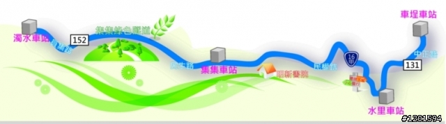 ◎騎程路線:彰化二水車站停車場北面入口(二水鐵馬追風道)→源泉車站(往南地下道入口)→二八水壩→水車公園轉152縣道→濁水車站→台8線→台16線→集集綠色隧道(龍泉公園)→集集火車站(午餐)→軍史館→明新書院→武昌宮→集集老街→集集古窯→十三目窯→綠色隧道(原路折返)→二水火車站(搭火車)→台中火車站/Sweet Home