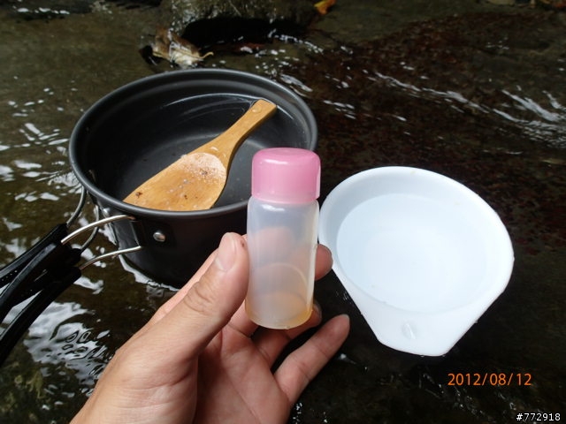 這次也第一次把平底鍋帶出來,把乾燥飯拿出來煮,在野外能吃到乾飯真幸福。也首次用小瓶子裝洗潔精清洗鍋子,這些都是第一次拿到戶外實習,以後要熟能生巧才是