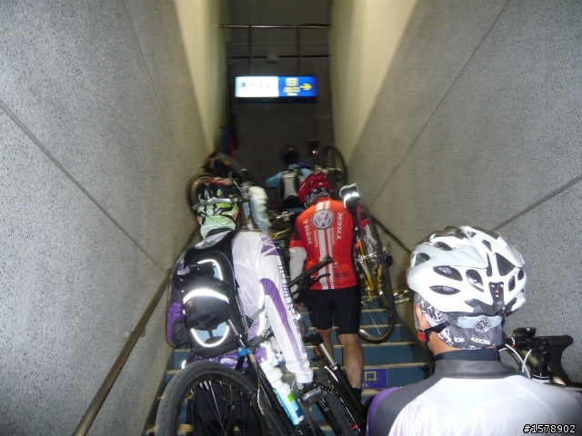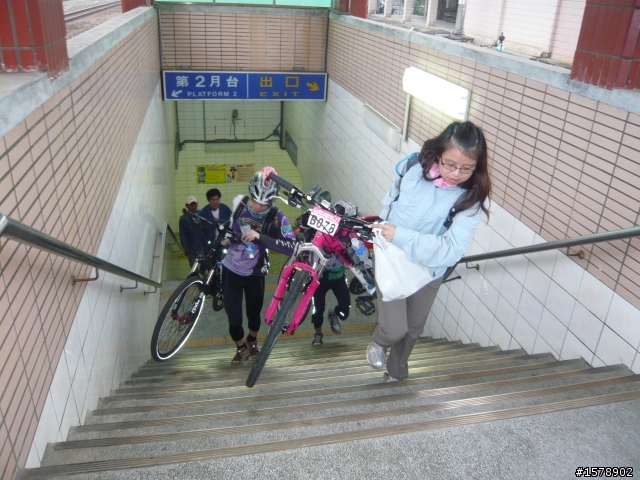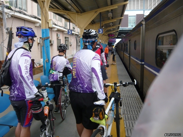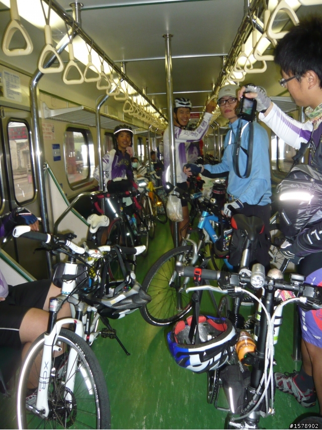 大家依序扛車出月台
