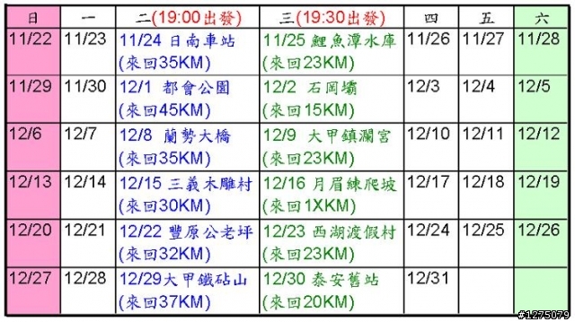去程:九甲路→月眉永豐村→六分路→安眉路→泰安新站→泰安舊站