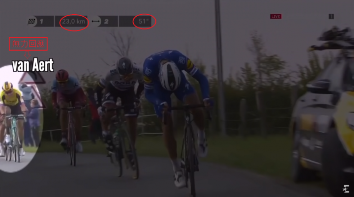 4. Sep Vanmarcke (EF Education First) : 終點前 12.1 km 的關鍵時刻機械故障 (第 4 名 / + 40 秒) (圖片來源:https://www.youtube.com;https://www.cyclingweekly.com) 【 Vanmarcke left inconsolable after taking another fourth place at Roubaix - 'They would never have dropped me today' says Belgian as gear problems ruin his race (2019.04.15 / cyclingnews) 】