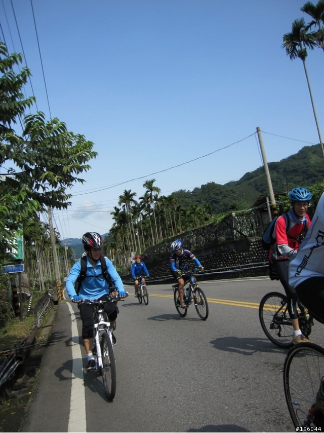 99-05-16后里夜騎團之假日惡騎團-黑田山>阿寸溪野炊一早,起霧的天氣,感覺今天不太妙,千萬別下雨啊....老地方華夫集合阿比:看!老外size的香蕉~~(((請問老外size是啥意思??有誰知道嗎?)))阿貓:哇~~~阿比的好大~~~阿勳:嘿啊嘿啊~好想咬一口粗早餐最右邊是阿良兄的同事--阿甫中間是參加過夜騎的--阿哲阿比.....怪怪的吶.....第一集合點出發前合照阿貓是來送終的送了我們一手海你根,順便借了一把不錯用的刀給我們用,甘溫啊,阿貓~走后豐鐵馬道阿勳過橋全員合照大家很猛,一下子就到了東豐鐵馬道的盡頭大夥又在對阿勳的鐵馬動手腳....東勢街角一景琮閔:龍哥,你有將阿勳的輪子漏風吧~龍哥:雞講的~差不多漏光了走谷關方向的台8線,大家很守規矩,一字排開。此時放晴了~阿憲和阿甫決定上山前先加滿油,因為再來沒有加油站了....加滿油繼續出花。日頭赤炎炎~大折帶我們到上次他們吃冰凍葡萄的別墅老闆熱情的拿出冰凍葡萄請我們吃阿憲:yes!!太好了~還請我們吃水蜜桃坐上舒服的搖椅就不想起來了...大夥吃的開心的...正所謂“免錢的尚呵呷”找老闆一起來大合照元氣滿滿,上路~!家瑋破胎,大折親自下海,邊換邊教學大折果然功力高深,一下子的功夫就換好了。二話不說,馬上出發~福民國小阿勳輕鬆騎琮閔覺得沒什麼阿忠沒在怕的看也知道龍哥在裝累基本上,我有跟團的話,阿哲兄~你就別躲鏡頭了...沒多久,第一個陡坡來了~阿忠爬坡中...阿憲哥決定使出抽車大法吃完這段坡~琮閔又要去吃喜酒了,真正的變態坡在後面,你都沒體會到....龍哥:我的背包有點重…(((龍哥的背包不是有點重,是超重,少說也有10公斤)))阿勳:哈哈哈~我沒帶背包,不用背~~(((阿勳,下次就要你背一顆大西瓜!!)))阿哲:終於見識到龍哥的厲害(((阿哲兄,沒想到你也是“特勇腳”)))阿比:今天只有我騎公路車啦~~~阿比:管你什麼阿罵的變態坡~~!,我就是要硬上!!!(((阿比,這就對了,拿出男兒真本事!!)))攻頂前的500公尺未完待續.....