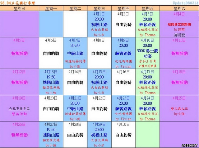 時間: 4/2(四) 晚上20:00 新店捷運站
