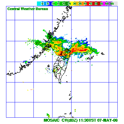 彩色衛星雲圖(中部地區的雲狀很稀薄)
