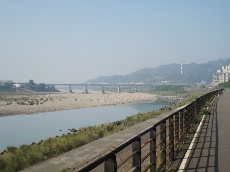 ........2個路癡,本來決定探索一下土城這邊的河濱就打道回府,上了橋發現這邊沒有引道,只見河的另一邊依稀才有(哇苦)。在被放鳥後已漸脆弱的心情下,2人打心底都激起了不能裝孬的情緒(物極必反),只好硬著頭皮過橋,然後決定往關渡方向騎去。