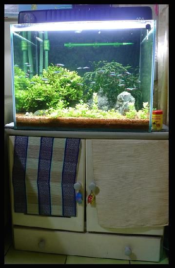 一直以來家中的二呎魚缸都是直接擺放在先前家中電視底櫃上!