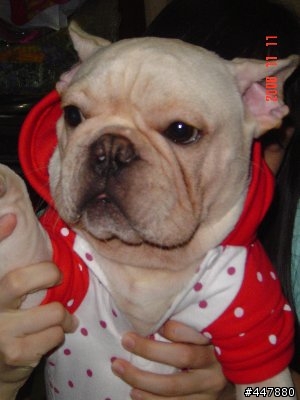 對牛奶過敏?我家的狗狗生小狗我都是直接泡幼兒奶粉給他們喝,便便的顏色都很漂亮啊!所以出生滿六個月以前我都會加牛奶,之後我就是偶爾餵他們吃低鹽的起司片。法國鬥牛的個性真的還蠻沉穩,我上班的時候他就乖乖的待在籠子裡,不吵也不鬧,只有想尿尿或便便時才會發出唉唉唉的叫聲;不過很愛跑來跑去,活動量還蠻大的喔!所以要養這種狗就要心甘情願的陪他玩,不然他會一整晚都不睡然後兩隻眼睛就一直瞪著你,反正法國鬥牛是一種動靜皆可的狗狗喔!