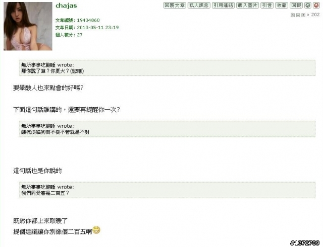 無所事事吃飽睡 wrote:你是針對主題回文取暖吧?