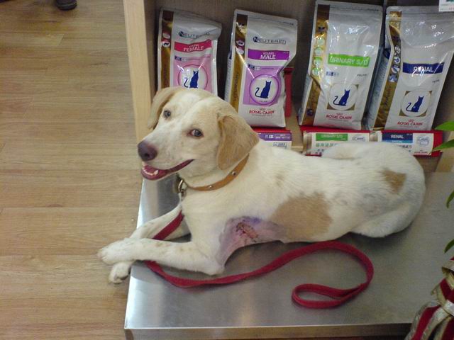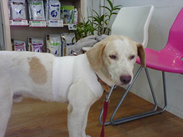 3.左側前腳胳肢窩有一約長五公分的傷口,已縫合照料中