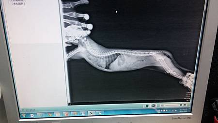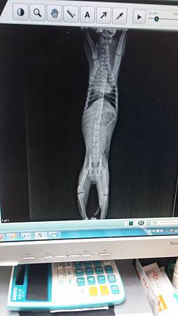 但仍需再評估,懷疑前腳有骨折或脫位(因前肢不正常擺位),