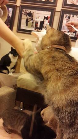 原來是因為這家餐廳裡面所養的貓咪,都是外面救回來的流浪貓咪