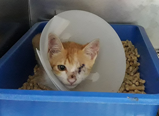 左眼感染摘除,個性親人撒嬌的小橘子,很喜歡講話哦。