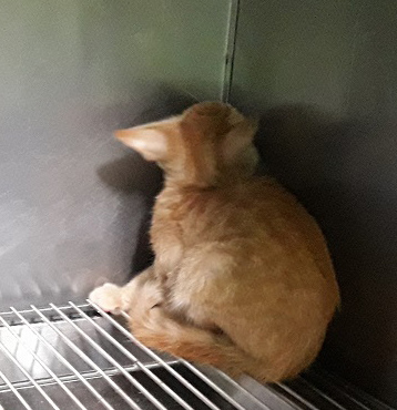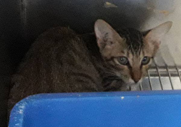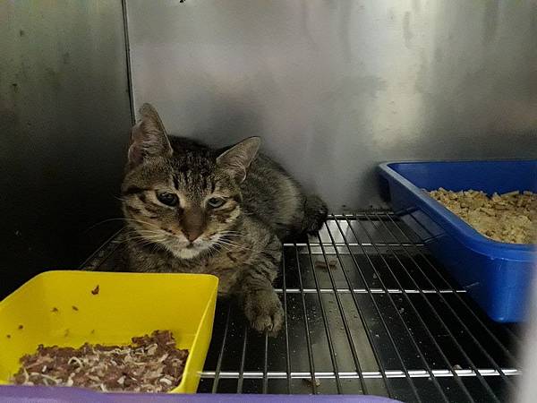 戒備中的小虎斑,來到收容所的喵喵們幾乎都會緊張充滿戒心,可以的話別來到收容所是最好的