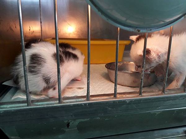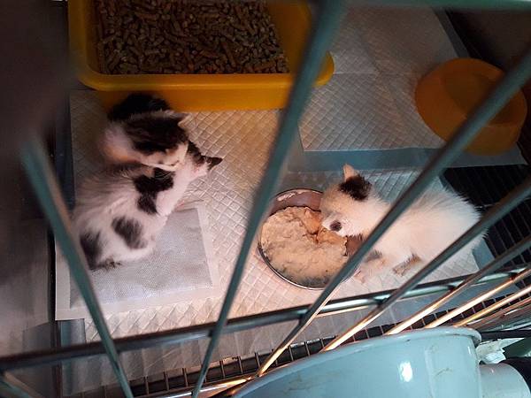 剛來時身體虛弱,後來終於有力氣吃東西的奶貓們