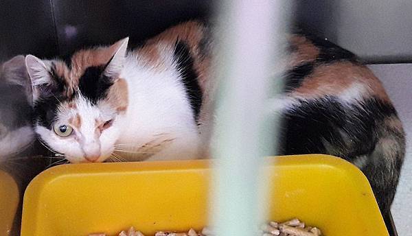 待了好一陣子的三花,終於會靠近籠子前方不緊張了