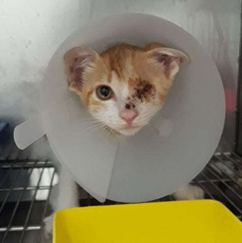 超乖親人愛講話的虎克船長眼睛有傷,必須要有乾淨環境與良好醫療,亟需醫療救援