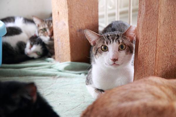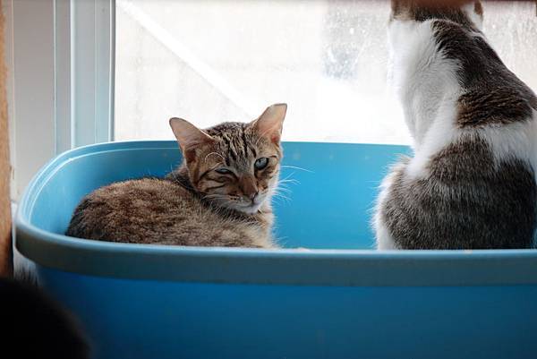 因為是和諧貓舍,所以虎斑在對我們啾咪(右眼可能需要看一下...)
