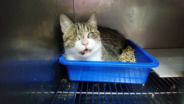 上週左眼化膿移除,對外求援的超親人愛講話虎克船長,本週狀況良好,依然痴痴等待愛心大大認養。