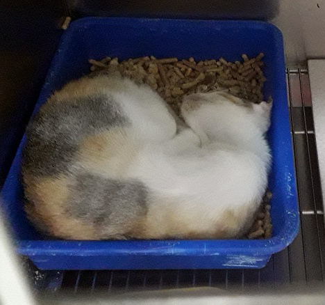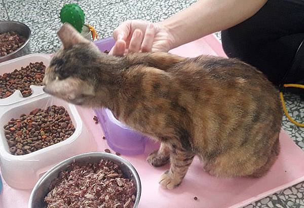 還有一隻小喵沒力氣吃飯,餵食雞肉泥吃了就吐。