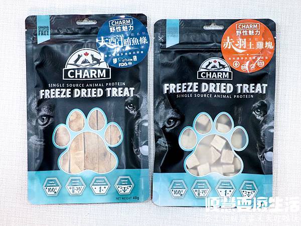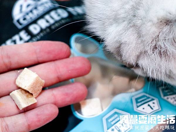 然後是兩包零食,零食都是採取冷凍乾燥的製作方式,非常方便保存,個人喜歡冷凍乾燥,有時候可以撿碎跟飼料混均勻增加營養素及不同風味,有時候可以單獨泡水,讓魚(肉)塊恢復原來的風味。而且直接給予貓咪最基本的肉塊、最單純的肉更能補充他們所需的營養。