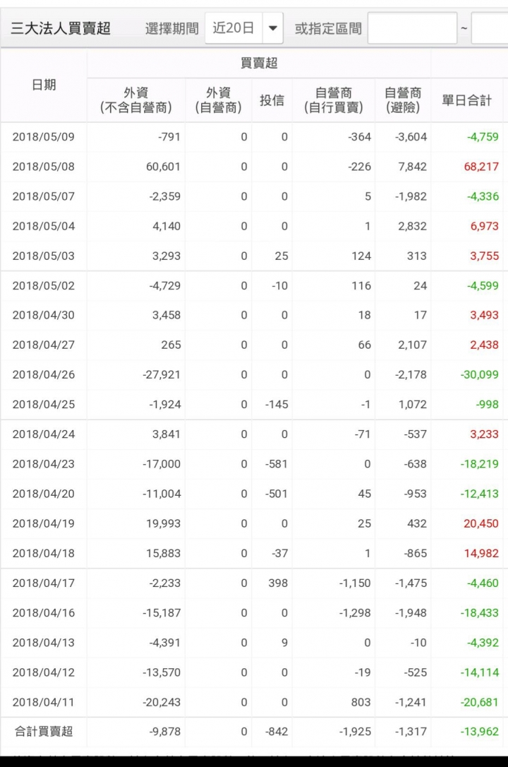 四月營收年減三成..4月營收為197億元只比2月180億元略高,月減率12.7%,年減率30.6%累計前4月營收864億元,年減率24.43%..基本面沒看頭乃是意料中的事還是,看看籌碼面比較有意思..三大法人5/9買賣5/8買賣5/9 週線