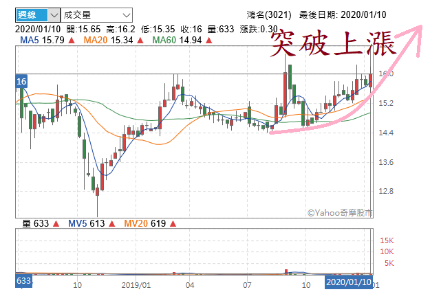 [鴻名3021]買進15.5元--------------------------------------------目前持股:[雙邦6506][圓展3669][鉅橡8074][大恭4706][鴻名3021]