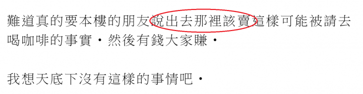 難道真的要本樓的朋友說出去那裡該賣這樣可能被請去喝咖啡的事實‧然後有錢大家賺‧
