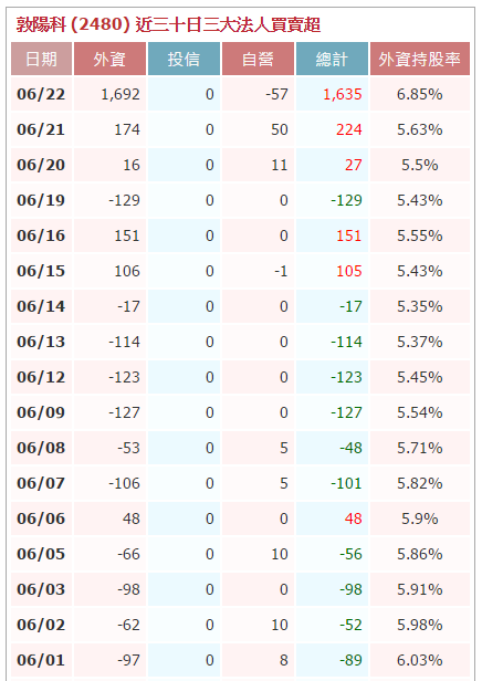 除息當天(6/22)外資買超 1692張,第三天(6/26)交割還券 1630張,