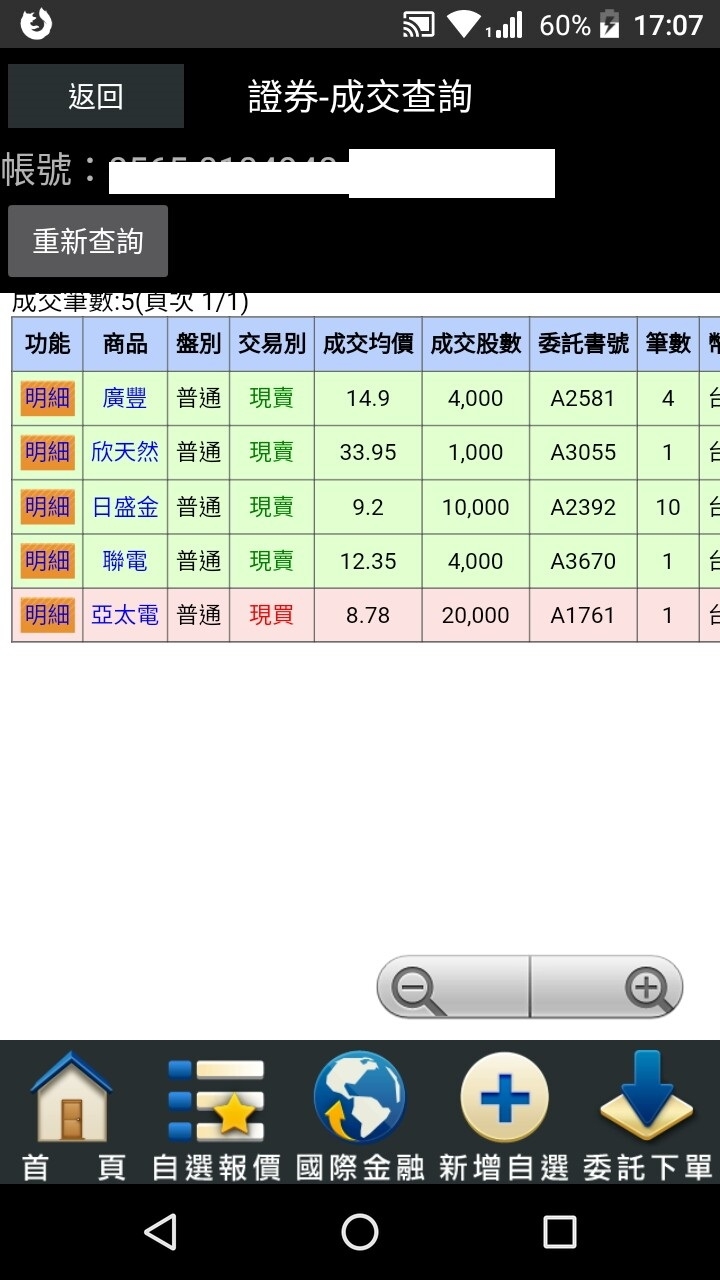 盤中報告賣出頂晶科買入元大高股息10張至於追加0056的原因就是看到非常多排單 感覺很有人氣結果買在26.81 收盤↓0.05 同樣的理由追了兩張宏達電賣頂晶科則是下降幅度太大 買進第二天翻紅 第三天尚有獲利 第四天轉盈為虧-3.42%賣出對帳單表示 損益580 報酬率-1.71來到做紀錄的個股表現元大高股息 成交均價 26.95 ~>26.86 (↓0.09) 報酬率-0.45由盈轉虧3檔聯電-0.41%☁☁☁☁台橡 -0.73%☁☁☁☁仁寶-1.54% ☁☁☁☁☁持續虧損6檔新增宏達電 -0.04%亞太電:與昨日相較上升1.8%欣天然:與昨日相較上升1.33%台中銀 維持富邦公司治理 -0.14%廣豐-0.67%☁☁☁☁☁日盛金:-0.84%☁☁☁☁☁持續獲利5檔緯創+0.21%元大金+0.57%元大全球AI +0.86%東元+1.58%★★★★鴻準+1.94%★★★★★未實現損益 與昨日相較上升5412元 (-580頂晶4832)