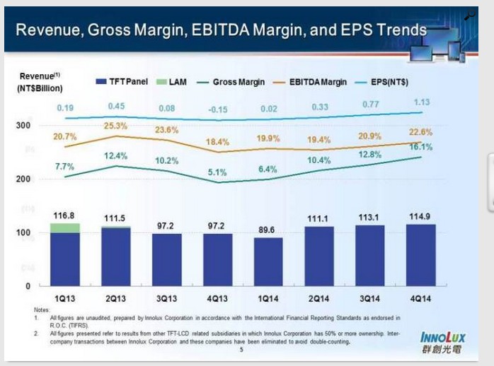 售價為每平方公尺469元美金。中小尺寸營收為新台幣227億元,較上一季增加7%;中小