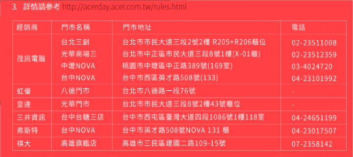 於Acer Day網站完成任務後,賺取20,000點以上點數至北、中、南指定專售店/旗艦店即可兌換【USB充電迷你冰箱】,每個帳號限換購乙只(8/3後開始兌換),還有機會抽 【Switch 10】 10台,詳細活動辦法請參照: Be Cool Every Day網站