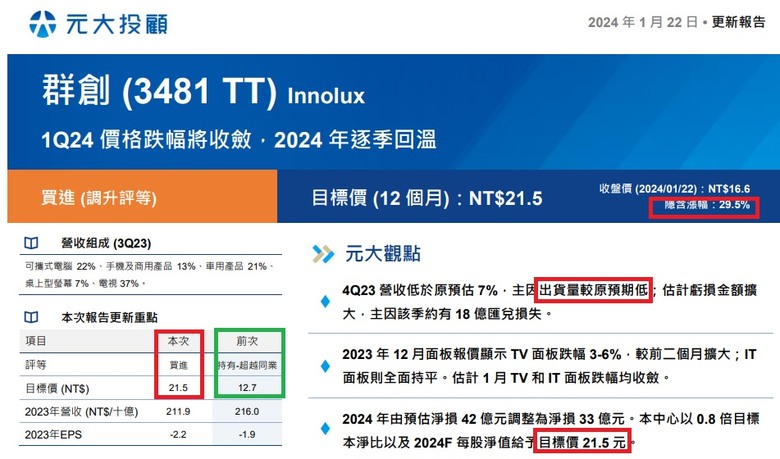 集邦科技(TrendForce)今(22)日公布元月下旬面板報價,在面板廠減產、偏光板上游受日本地影響供貨不順,讓面板價格出現止穩現象。TrendForce研究副總范博毓表示,電視面板32吋報價率先上漲,其餘均止跌;IT面板部分尺寸報價緩跌。