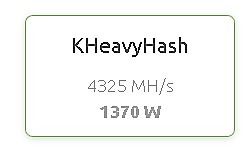 4090真是一塊強卡阿,耗電量又低‧2G的KAS算力,耗電292W.不知道調整之後會不會更低?這樣一看,好想換4090了‧一次換四張‧要換的主因,大概是家庭用電的負荷到了極限‧4張就8G的算力,一天約六百顆‧