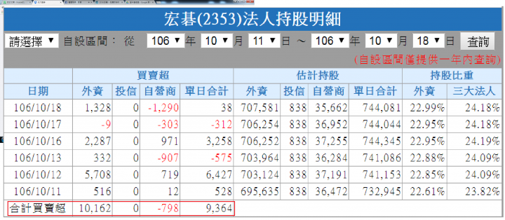自從9月營收出來後,宏碁從官網發公告說電競產品成長168%,這是第三季毛利率會好一個可能性,在第三季財報沒有出來前,沒有理由看空的,外資群一定也是會一直買進的,這沒有什麼好說的。看一下9月營收開出來後,外資群6個交易日買了10162張,這6個交易日僅僅有1天賣超9張外,剩下清一色是買進。