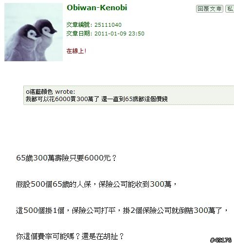 Obiwan-Kenobi wrote:對嘛!缺點要講,一年...(恕刪) 你說我胡扯是在講這個費率喔! 你還再轉移話題 真臉皮厚到底 繼續掰吧 還沒看過你這種人 不禮貌到極點我有說過保證續保過嗎 你再秋看看 還能秋下去我佩服你的臉皮