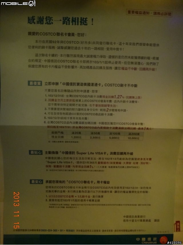 要找毛病的話我們來看看,中信卡今年底才終止契約