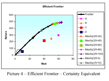 Efficient Frontier既然是建構於MTP(現代投資組合理論)的基礎上,我覺得結合CAPM(資本資產定價模型)一起會比較好懂~Asset Allocation and the Efficient Frontier運用範例~Combining Preference Theory and CAPM Efficient Frontier