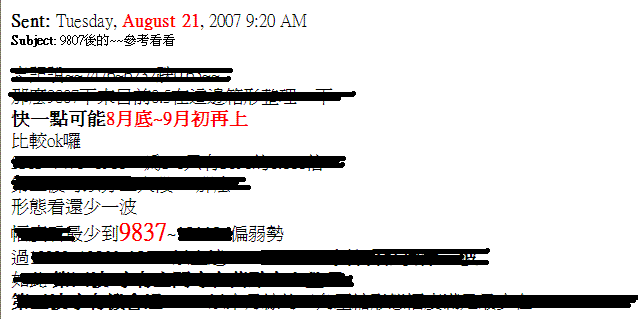 轉po我朋友的 參考參考 跟著他賺大波段7/21 測指數高點9826~~來9829~~差3點8/21 測指數最少滿足點點9837~來9835~差2點~~就下去整理10/22 大殺251點~~我朋友判斷10/26就知道殺真殺假的~參考囉