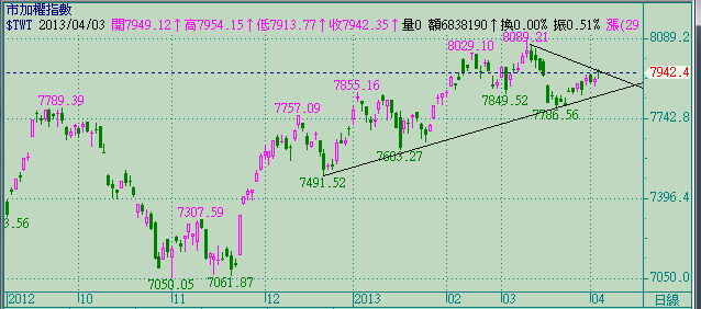stock591 wrote:請問以下何者正確?1.三角收斂2.上升小楔型3.上升大楔型4.下降小旗形5.下降大旗形6.以上皆非,請試申論證明之...(恕刪) 都不對,那來那麼大的三角型。2、3更是錯的誇張。重點,畫線給大盤走,那是自找苦吃。