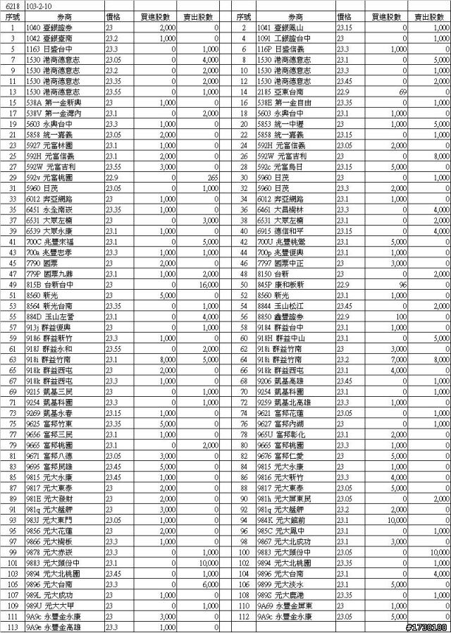 紫微0726 wrote:[豪勉6218]獨立...(恕刪) 元大頭份中23.1 出了10.000股元大頭份中23.05 出了10.000股群益竹南在23跟23.2元時進出所以,代表主力已跑了,是嗎??我是新手還在學習籌碼流動中,請各位大大指點...