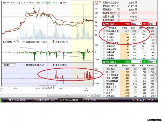 其實我很想問一下~~紫大對下面看法評論如何?這剛好是在下昨天問版友的,其實在下籌碼很少看所以沒有人可以給我意見,我都自己亂判斷,哈哈@@不知道對或錯~~但我會配合技術分析。標的8411~軟體理財寶~分點設定的部分為60天,我的看法是主力有在吃貨。會不會發動不知道~也可能賠到死。此圖分點進出只取15名賣超券商~不含買超。可以看到四千多張接下來取前3名賣超券商~不含買超,其實過半以上兩千多張的賣超都由前三名包辦。再將前三名一年的進出查詢,前3間券商已經賣差不多了。以此手法再去看買超券商分點。取前15的就不贅述~也是買超居多。總和也是比賣超多的,前三名分點券商一年的進出查詢,是買超並且完全長期持有的。兩邊交叉比對,我的判斷看好~雖然我無法了解該股爆增後的股權怎麼判讀...。這隻未來漲跌到還好~只是一個過程。也不知道我的看法對或是錯,當跟大家分享也可以~其實我比較希望有建議可以聽,任何意見都好。PS技術分析面就是五波上漲~還有一波尚未發動。PS2這軟體其實是免費的。PS3不要問我怎麼用~我也不太會。PS412980