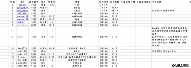 cabrera71812 wrote:小弟最近跟紫大簡單做了相同的表,也是網友們的提問。等過一陣子,再把日後股價結果貼出來,(如果要補充的,我會加上去,也許您今天的建議,會是決定股價的關鍵)。-----------------感謝[cabrera71812]有說到做到!這種[盤面分析]就是我進步的方法!假設是自己買進的,分析之後該如何面對!再檢討[失誤率]有多少,是否有慢慢減少失誤!嘿嘿!目前我的失誤率<10%!如果您有翻閱之前的文章,就知道我也是有下功夫!