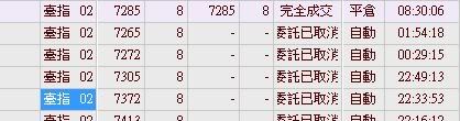 最近忙著作案子,好久沒上來聊天了。不曉得各位朋友有沒有賺到今天的大喜盤呢?話說昨天我就覺得現貨已經來到半年線,其實已經算有破了半年線,雖然大家都說半年線是支撐,但是我總覺得那是一個訊號,此外,從我前面的發文裡面,可以看到其實在一、兩個星期前,我就非常質疑目前的景氣,何以樂觀的起來?昨天,在盤中我下了八口的空單在747X,尾盤雖然跑到750X,可是我並沒有平倉。因為昨天整個盤勢算是都在一個區間內整理,我預計這只是再下一波前的多空拉鋸。沒想到,昨天從歐洲開始的壞消息,傳到美國,DJ跌破了萬點。昨天晚上,我一邊在做工作,一邊在注意美國的動靜。搞到快兩點才睡,這當中,我改了好幾次預約委託的平倉價位,從7413,7372,7305,7272,7265一路下修,最後我覺得不要太過分,還是決定改在7285。我知道我今天起不來,所以先設好要平倉的價位。早上九點半起來,呦呵,平倉了,而且居然還可以殺到721X。這真的出乎我意料之外。這次的操作,非常成功,一共賺了三十萬多。今年過年總算多了一個大紅包了!祝大家也能夠多賺一點!